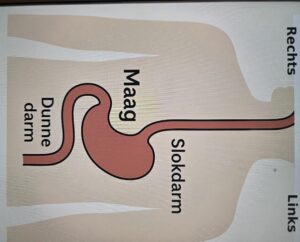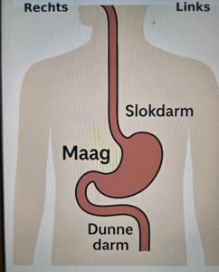 Anatomisch klopt dat: de overgang van slokdarm naar maag ligt rechts, de maag zelf buigt af naar links. Bij liggen op de linkerzij zakt de maaginhoud eerder weg van de slokdarm-maag overgang, bij liggen op de rechterzij zal de zure maaginhoud juist eerder terugvloeien naar de slokdarm.