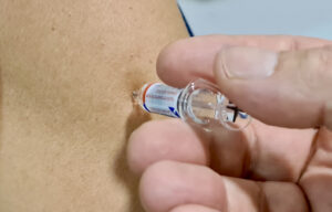 Wesley trok een beetje bleek weg, is dat echt nodig dokter, zo een prik? Zijn twee begeleiders werden ineens wakker, “ja, doen jôh Wes, neem een prik”, riepen ze vrolijk. “Wees niet zo bang man!” Ik legde het nog maar eens uit en schoorvoetend besloot de jongeman tot de injectie. En waar komt die prik dan? In je bil antwoordde ik. Nu hadden zijn vrienden het helemaal niet meer, ze rolden bijna van hun stoelen van het lachen. Van de prik heeft Wesley nauwelijks iets gemerkt en 2 dagen en 2 prikken later was zijn zonneallergie vrijwel verdwenen en adviseerde ik hem met de tabletten en smeerseltjes verder te gaan.